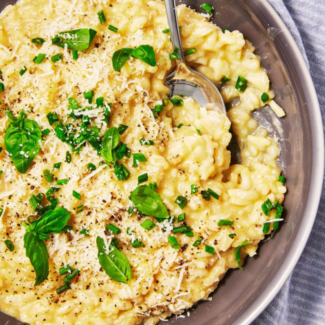 This is like the recipe I tried recently and I just love it. It is simple cheesy creamy goodness and I cannot recommend it enough. It is made with Arborio rice, chicken broth, yellow onion, garlic & parmesan cheese plus a few other ingredients to suit your tastes and cooked until creamy and delicious. This is a fabulous side dish or a dish all its own.