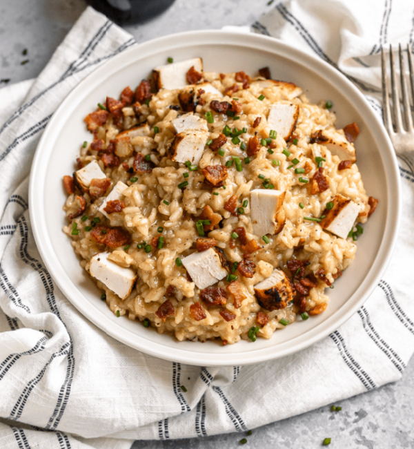 My kids will love this delicious Risotto recipe. It is provides an American twist to this Italian classic and I know this will be absolutely delicious. This recipe is undeniably creamy and decadent with risotto that is mixed with flecks of smoked bacon, plenty of aged cheddar that blends and melts into the risotto and then topped with chunks of seasoned grilled chicken. It is a masterpiece of a meal that my family will surely devour and it is first on my list to make.