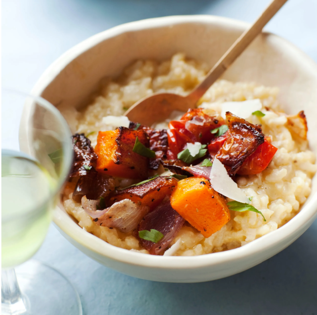 This is an easier to make risotto recipe as it is made in the oven which means less stirring for you. You rice will cook in this baked dish while roasting the veggies on top. Simply and totally delicious and this is perfect for the winter months using winter root veggies. This makes the perfect weeknight version of Risotto due to it being easy to make.