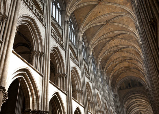 Inside the cathedral, you can see some of the original 13th-century stained glass windows, the tomb of Richard the Lionheart that contains his heart, and the zigzagging Bookseller’s Stairway in the transept. The cathedral was the subject of a series of more than 30 works by French Impressionist Claude Monet, who captured its beauty in various lights and at different times of the year.