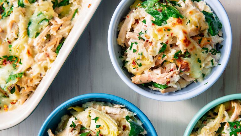There is nothing better than a delicious casserole any night of the week. This Chicken Spinach Artichoke Rice Casserole is no exception and my husband will love this dish due to the fact it utilizes artichokes. This is a comforting chicken casserole that truly needs to be in your winter dinner rotation. The base of the dish is rice and add in chicken, spinach, artichoke, cream cheese, mozzarella, parmesan and spices. So delicious and comforting and it all bakes in one casserole dish for the ultimate on convenience too.