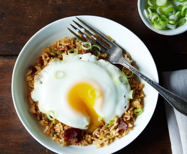 This is a delicious recipe and perfect for breakfast or any meal honestly. This is the perfect meal to make when you have leftover rice and it is also a great way to make use of any leftovers you may have too. I always make lots of veggies for diner to go with ut meal so when I have them leftover they will be the perfect veggies to add to this fried rice. The sky is the limit here and you can really whip whatever you like into this dish and it will be delicious. The one I am making incorporates crispy bacon, thinly sliced green onions, low-sodium soy sauce, & eggs. The end result is a dish of delicious fried rice that will be the perfect way to start your day.