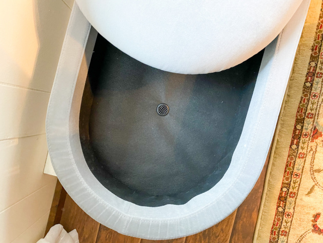 The Harmati Velvet Storage Ottoman Bench is easy to assemble as well. Seriously…. If I can do it anyone can. It come in one solid piece and all you ahve to do is add the sturdy wood legs. The sleek legs give the ottoman an elegant look and also make the assembly a breeze as all you have to do is screw on the legs.