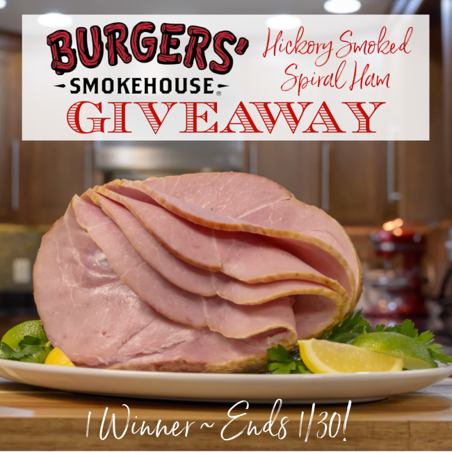 We are giving away Burgers’ Smokehouse/@Smokehouse1952 Hickory Smoked Spiral Sliced City Ham, a $89 dollar value