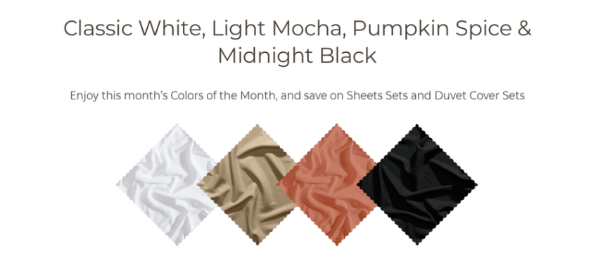 Want to save money when purchasing PeachSkinSheets!? I have a savvy tip for you and it is to shop PeachSkinSheets’ Colors Of The Month Sale! Each month PeachSkinSheets picks three or four new colors that are on sale making it the best time to stock up on your favorites! Right now the folks at PeachSkinSheets have a fabulous array of colors on sale…….. Classic White, Light Mocha, Pumpkin Spice & Midnight Black! There is truly no better time to stock up on all of your favorite bedding essentials and this sale is good on their PeachSkinSheets in the above listed colors PLUS their Duvet Sets Too!