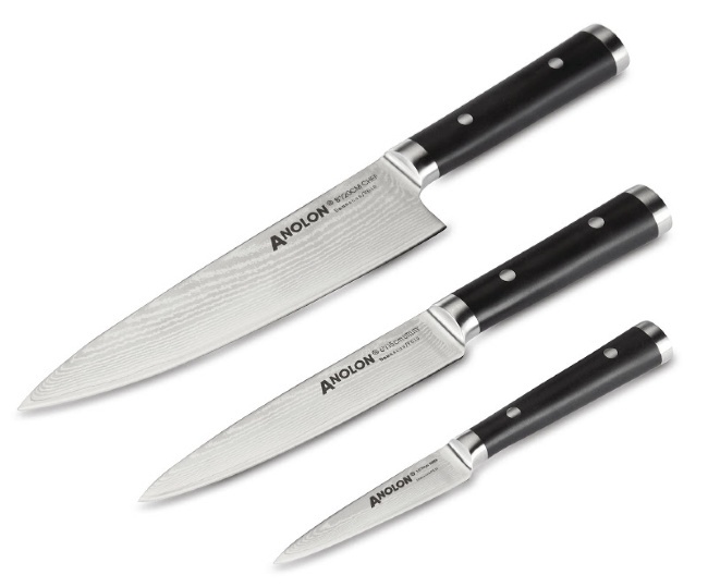 Cooks big and small need the finest culinary tools and they need tools that will provide the finest cut  and the Anolon Imperion Damascus Chef Knife Set delivers just that. Anolon Imperion Damascus knives feature 67 steel and iron layers that are forged into kitchen knives that deliver uncompromising durability, beauty and performance.Â