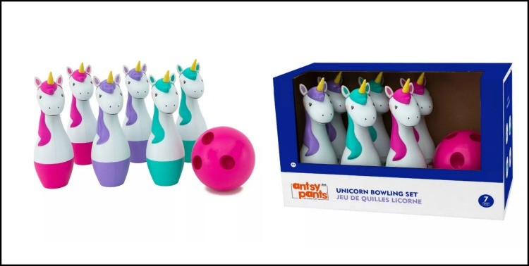 I fell head over heels for the Antsy Pants Unicorn Lawn Bowling Set as my god daughter Scarlet absolutely loves all things unicorns. This fun set makes bowling more magical making the pins unicorns! Set up the bowling pins either indoors or outdoors and you are set to enjoy a fun game of bowling…. unicorn style! The set comes with 6 Unicorn pins and a bowling ball.