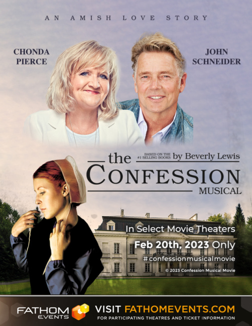 “The Confession Musical” is based on the New York Times best-selling book series “The Heritage of Lancaster County,” written by Beverly Lewis and written for the stage by Emmy-Nominated screenwriter Martha Bolton. This beautiful musical is all about Katie Lapp, a young Amish girl that discovers her parents have been keeping a secret from her… she is adopted. Katie decides to seek her birth mother, defying the rules of her Amish village and risking a shunning. All the while her wealthy birth mother, Laura Mayfield is battling an illness that might take her life and she too decides to begin a search for her long-lost daughter to bequeath her inheritance before it is too late. Secretly plotting against her is the gold-digging husband Dylan (played by John Schneider), who is scheming to make sure he inherits her fortune. With the help and prayers of her Christian maidservant (played by Chonda Pierce), the duo tries to foil Dylan’s plan and reunite Katie and Laura.