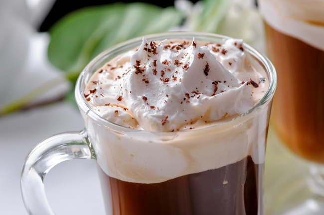Brew 1 K-Pod of CASK & KETTLE Irish Coffee on the smallest setting. Add 2 TBSPS of Frangelico Hazelnut Liquer. Mix in 2 TBSPS of Bailey’s Irish Cream. Stir gently and top with whipped cream.