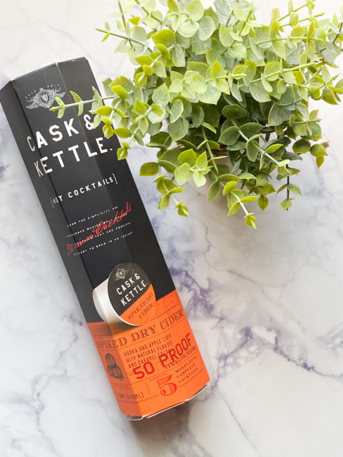 CASK & KETTLE’s Spiked Dry Cider is yummy and it is a crisp Michigan Apple Cider Cocktail with a bold, spirit-forward finish. This cocktail has a beautiful amber color with an enticing aroma of cinnamon, green apple, and warm alcohol. Michigan apple cider provides a perfect crispness to this smooth, warm beverage. The flavor profile is a fresh upfront apple flavor that is followed by a hint of vodka and cinnamon. This yummy cocktail from CASK & KETTLE contains 25% ALC/VOL (per pod) and it is 50 Proof.