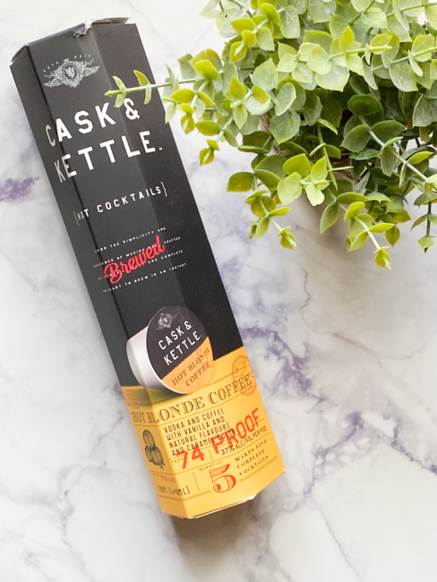 This CASK & KETTLE Hard Cocktail is my favorite for sure. CASK & KETTLE’s Mint Patty Coffee is a delicious mint coffee treat with a bit of chocolate to make it extra decadent with just enough vodka to keep you warm. It provides a bright, crisp taste of vodka and mint blended into a dark roast coffee with a touch of dark chocolate . This one contains 37% ALC/VOL (per pod) and it is 75 Proof.