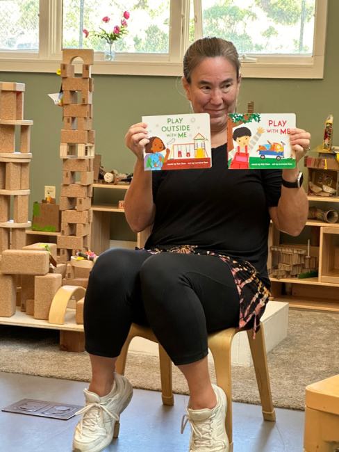 I’m well-skilled in reading books to one child at a time. I know how to ask questions, to make them giggle, and how to quiet them down before that kiss good night. My Play With Me series is designed to help adults engage with their child on the page. How do you pop bubbles? What can you draw with chalk? What’s your favorite playground game? It’s perfect one-on-one, and I’ve never met a kid who didn’t interact with me and the book.
