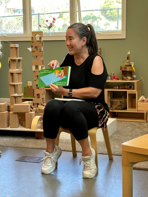 Fortunately, the teacher was there to show me the way. Each child was called on, one by one, to answer the questions as the book progressed. And when the chalk drawing fight began, she gently suggested that they both could have the pretend pink color. Who knew that pretend pink chalk was in such demand? Fairly soon, I was able to pick up the flow. No, no, it’s Charles’ turn next. That’s a great idea Lucy. You love the jungle gym best. And look, Valerie agrees.