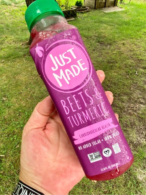 Just Made Beets & Turmeric: Made with non-GMO beets, carrots, oranges, pears and turmeric so it’s loaded with potassium, fiber, folate and iron. These superfoods support brain function, cardiovascular health and the nitrates in beets help with athletic performance.