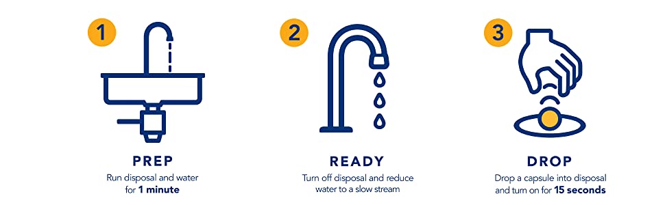 (3) Drop: drop a capsule into disposal and turn on disposal for 15-seconds. Turn off and enjoy the citrus scent and feeling of a fresh sink!