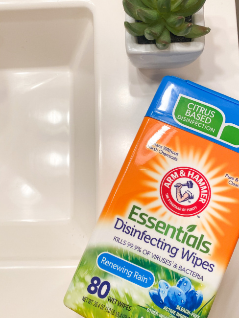 Arm & Hammer’s Essentials Disinfecting Wipes clean and disinfect without the use of harsh chemicals which is something that I love. I choose Arm & Hammers Essentials Disinfecting Wipes because I feel confident using them in my home with my kids and my furry family members as Arm & Hammer has created these wipes using a Citrus-Based Disinfection that kills 99.9% of viruses and bacteria. These wipes kill cold and flu viruses, and MRSA, Strep, Staph, E Coli, Salmonella and Kleb…. all without the use of harsh chemicals which can be bad for not only you but you pets and the planet. Arm & Hammer Essentials Disinfecting Wipes provide are and simple cleaning that you can feel good about.