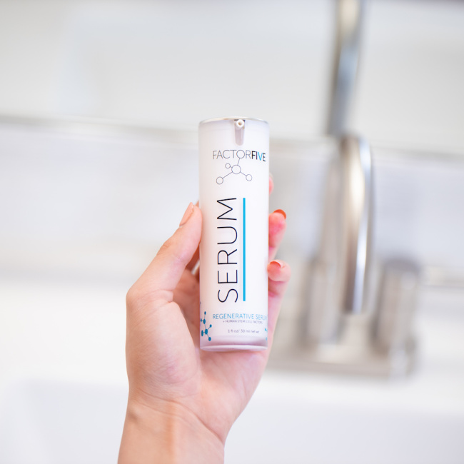 The power of Human Stem Cells is real. As you age, your skin produces less cytokines and growth factors, which means less of the important rejuvenating components your skin needs to maintain a youthful appearance. This is where FACTORFIVE comes in as their scientists have developed a process to isolate these potent rejuvenating factors from human stem cells. By using FACTORFIVE’s Regenerative Serum, you are resupplying your skin with these powerful missing factors. FATORFIVE promotes cell renewal, boosts the production of collagen and elastin, restores aging cells, and, ultimately provides you with a more youthful and supple appearance.