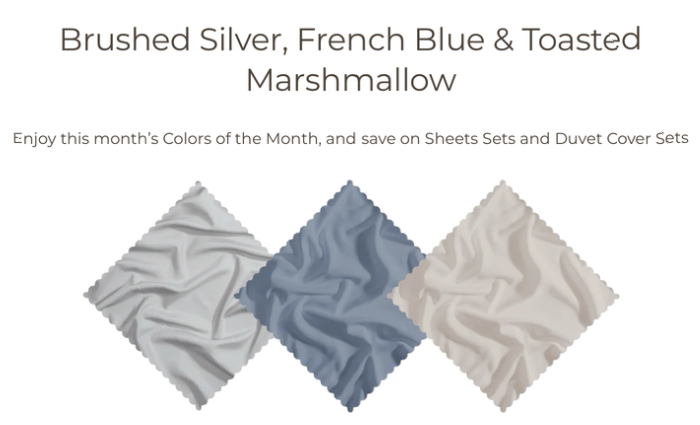 Want to save money when purchasing PeachSkinSheets!? I have a savvy tip for you and it is to shop PeachSkinSheets’ Colors Of The Month Sale! Each month PeachSkinSheets picks three or four new colors that are on sale making it the best time to stock up on your favorites! Right now the folks at PeachSkinSheets have a fabulous array of colors on sale…….. Brushed Silver, French Blue, & Toasted Marshmallow! There is truly no better time to stock up on all of your favorite bedding essentials and this sale is good on their PeachSkinSheets in the above listed colors PLUS their Duvet Sets Too!