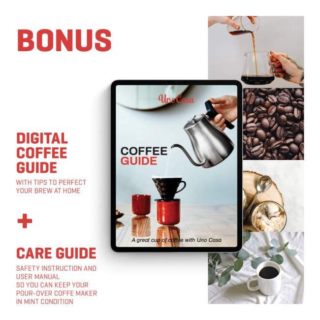 The Uno Casa Pour Over Coffee Maker provides you with better control over the brewing process which is something a coffee connoisseur will love. Wether you prefer a lighter brew or a full bodied, strong and rich dark cup of coffee, this pour-over coffee kit provides you with whichever you choose. The pour-over coffee kit allows you to adjust the water temperature, pour, and brewing time which makes it the perfect way to create the delicious cup of coffee that you want, each and every single time.