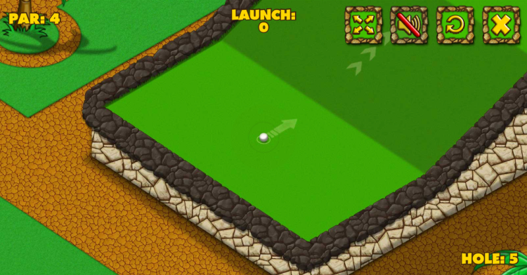 This game is a beautiful overhead view isometric mini golf arcade game where players control the angle and strength of the shot to try to put the ball in the hole. You can use the mouse to look at the whole mini golf course that you will be playing on the get an idea of where you want your golf ball to go. You simply tap the screen or click on your mouse (depending on if you are on a computer, tablet or phone) to begin the swing. You then pull back to control the strength of the swing and move up and down to control the swing angle. The arrow populates when you are aiming and he’s with the direction of the game and it is really fun and as I mentioned above….. very addictive. If the hole is out of view via your screen…. you can click on the screen to scroll around to plan your best shot or shooting strategy.