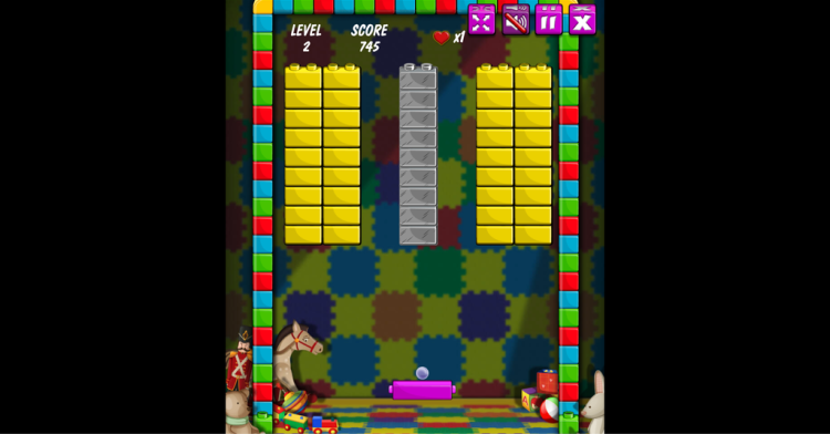 You get 3 lives in this game and as you level up you will find that some of the bricks require repeated hits to break them completely… which I fun as its adds a bit of a challenge when playing and leaving up.