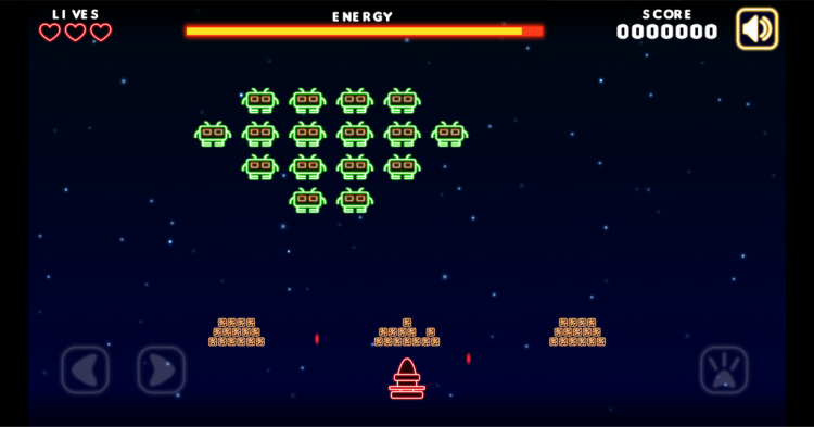 To play…. you simply tap your space bar to shoot the aliens. You move right or left to avoid their shots while trying to shoot them down. You can also use the bases to block their shots. As you move up in levels…. various alien spacecraft take different shot amounts to be destroyed making the levels more and more difficult. Each level also has its own pattern of movement with some ships moving side to side while others will also come forward to you each time they hit the edge of the screen. When you get close to eliminating all ships… the last few ships speed up making it harder to hit them and to also dodge their bullets.
