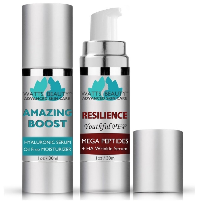 Watts Beauty USA offers skin care products that provide results without the use of harsh chemicals and I love that their products are professional formulas and sizes at a savvy price. I am most interested in their Optimized Hyaluronic Serums as they provide the results I am looking for in my mid 40’s. Hyaluronic Acid is a gentle cushioning substance that is present in your skin, in every joint in your body, and it is even in your eyes. Hyaluronic Acid is abundant in young skin and it decreases with age slowing the renewal process while causing dry, dull, thin, sagging, loose, crepey skin, fine lines, wrinkles and more. These are all of the things I do not want which is why I have added Watts Beauty USA’s Amazing Boost Hyaluronic Serum to my skin care regime.Â