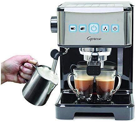 The Capresso Ultima PRO features a self-tampering portafilter all while providing programmable cup sizes and it’s the perfect choice for easily brewing delicious espresso and cappuccino’s at home. The two independently programmable cup buttons can be set for up to 6 ounces of espresso and you simply push and hold either of the buttons and watch as the liquid is dispensed into your cup. Once you have achieved the desired amount, you simply push and release the button again to lock in the setting. In addition to that the Capresso Ultima PRO has a powerful milk brother that creates steam for thick and rich cappuccinos, while the hot water setting can be used for rich and aromatic Americanos or hot tea.