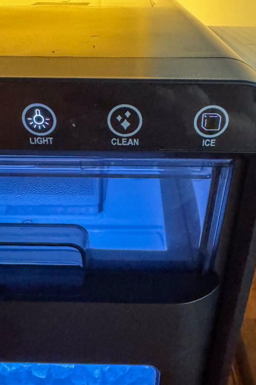 To use this nugget ice maker…..simply fill the water tank which is removable. You can take to the sink to fill or you can leave the tank in the unit and use a cup or pitcher to fill it. You then just simply slide the water tank back into place and then touch the ice icon on the unit to begin ice production. The machine will do all of the rest!
