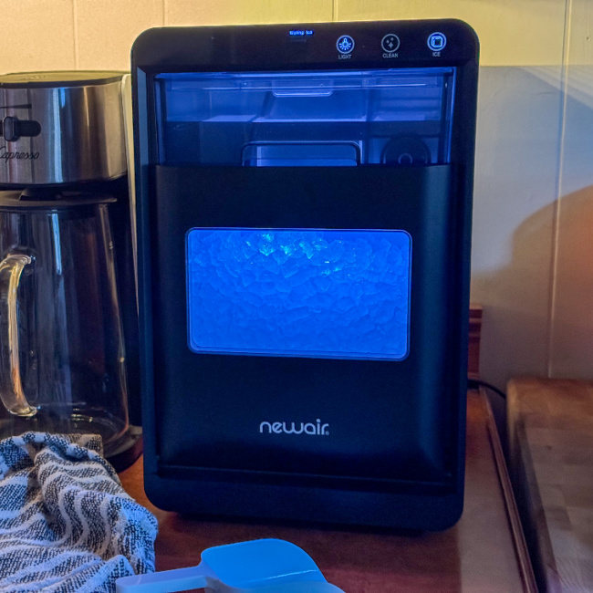 I love this ice maker from Newair and I use it a lot. My youngest just like to make ice so she can just chew the nuggest…lol