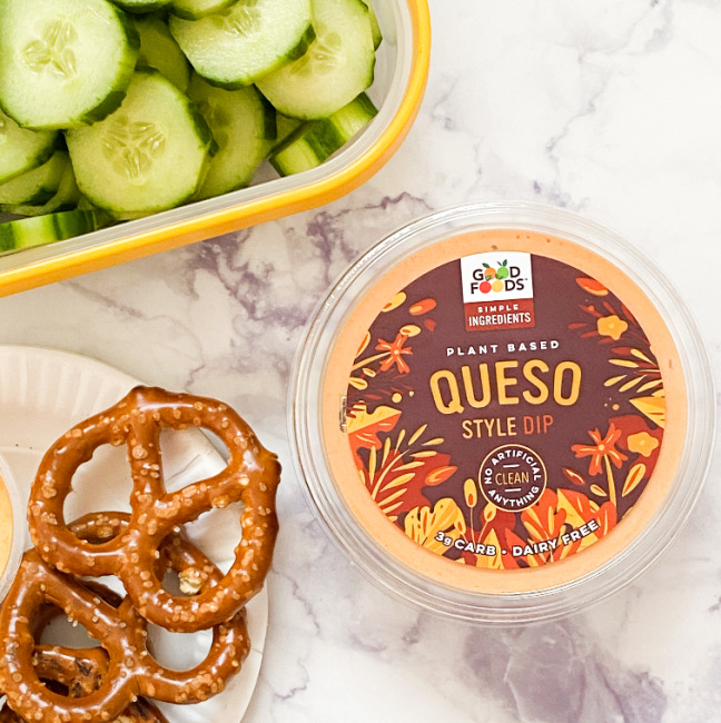 Good Foods Queso Dip is everything! This is a fabulous and tasty dip that is perfect with chips, veggie sticks, pretzels,, and more. With this Queso plant-based dip you can experience the “cheesy” goodness of this creamy almond-veggie dip that is whipped to perfection and that contains less fat. This is a cauliflower based dip that is simply delicious and that will add a delicious flavor to nachos or pasta and that is a fabulous pairing for pretzels and veggies. As with all Good Foods products there are absolutely no artificial ingredients, just 100% wholesome goodness!