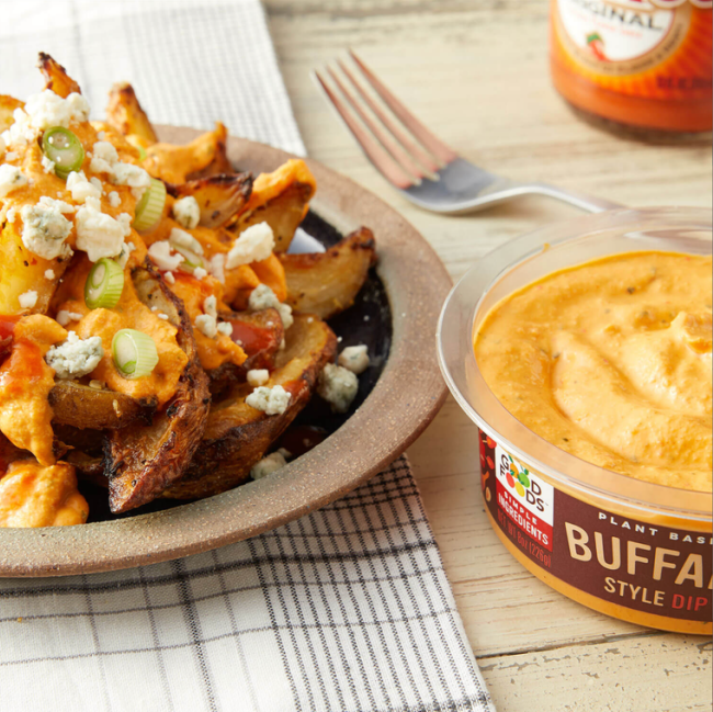 This is Good Foods Buffalo Style plant-based Dip 4 Pack is perfect for on-the-go snacking. This is a cauliflower-based almond-veggie dip that provides you with 100% real food and less fat. Perfect for carrots an celery, toss with grilled shrimp, mixed into your next batch of chicken salad and more!