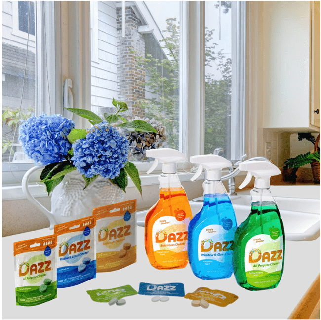 DAZZ is a high-performing, refill household cleaning system that is basically a line of household cleaners that come in concentrated tablets that allow you to reuse spray bottles, rather than toss them into the trash. I love this as DAZZ Cleaning Tablets are a sustainable cleaning solution that I love plus they are economical! It really does not get better than that which is why I have to spread to word to everyone and anyone that I know.