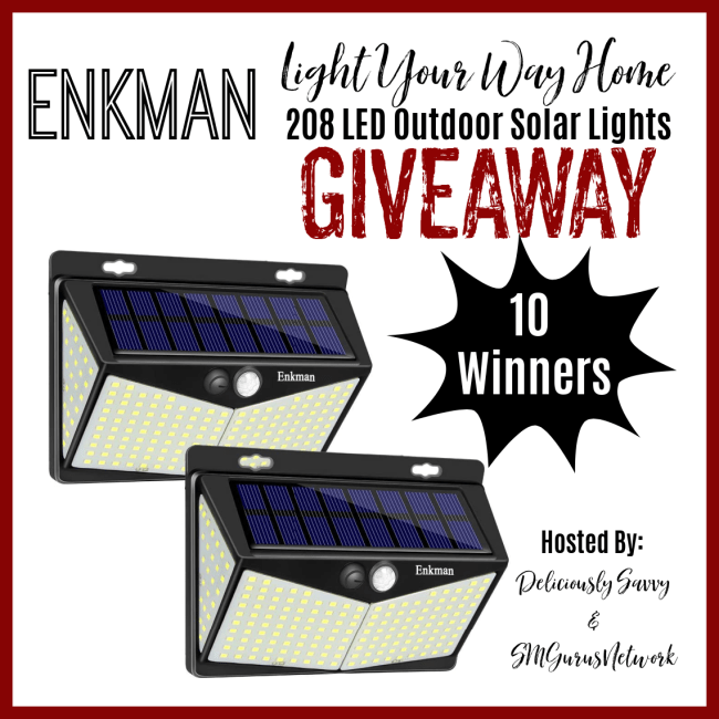 10 Lucky Winners will win a set of Enkman 208 LED Outdoor Solar Lights (TRV $270)!