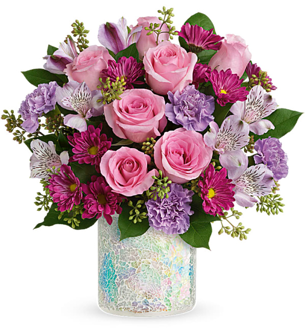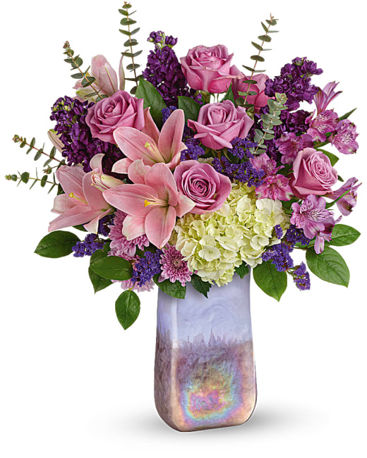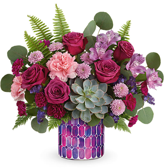 This masterpiece is Teleflora’s Purple Swirls Bouquet. What’s better than purple? More purple! Impress and indulge mom with this masterpiece! It is impressive and available in 3 sizes too.