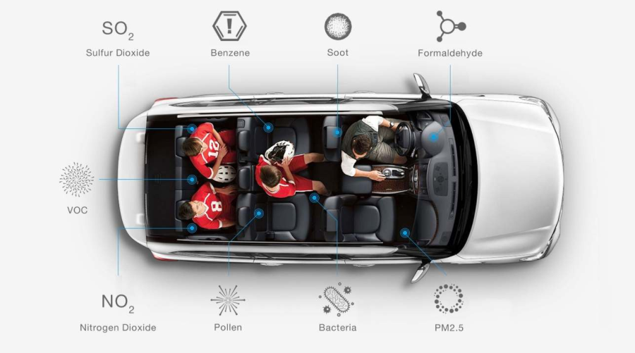 Did you know that not only do you need to worry about the outdoor pollutants while in your vehicle but also the toxic new car smell that your vehicle may have. Your car can expose you to over 275 chemicals that can be present in your car at any given time, many of which are produced by interior materials which can contain toxic chemicals. In fact… researchers have found that it can take up to 3 years for “new car smell” toxins to drop below thresholds considered “safe” to breathe.