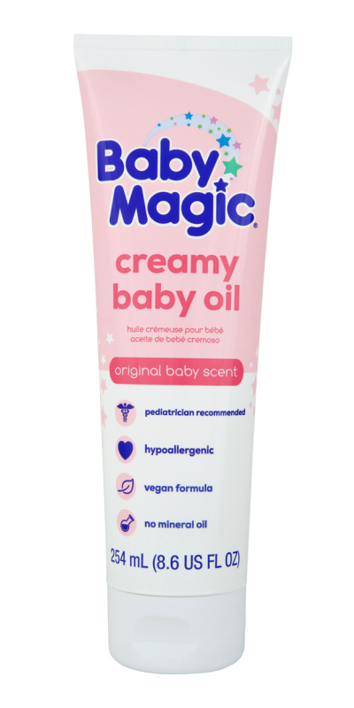 Care for your baby’s precious skin with the sweet, delicate touch of Baby Magic Creamy Baby Oil. The unique blend of gentle lotion and coconut oil will leave skin feeling silky-soft and cuddly. Vitamin-enhanced and full of nourishing ingredients like camellia oil and marshmallow root, this creamy hydrator will keep skin feeling healthy and baby-soft. Made with marshmallow root, known to moisturize and calm skin, and aloe, which soothes and replenishes dry skin’s moisture barrier. The quick-absorbing formula also contains hydrating ingredients like coconut oil and sunflower oil and leaves behind the soft, comforting smell of our original baby scent. Baby Magic Creamy Baby Oil is gentle enough for everyday baby skin care use.