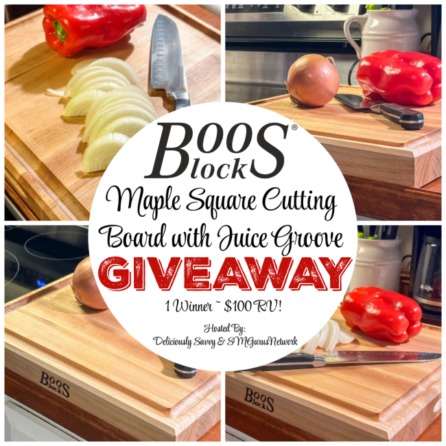 1 Lucky Winner will win a John Boos & Co Maple Square Cutting Board with Juice Groove Valued At $100!!!