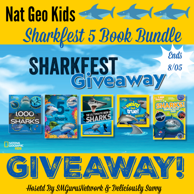 1 Lucky Winner Will Win A 5 Pack Bundle Of Nat Geo Kids Shark Books With A TRV Of $66!
