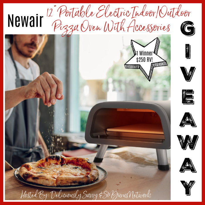 1 Lucky Winner will win a Newair 12″ Portable Electric Indoor/Outdoor Pizza Oven with Accessories Valued At $250!!!