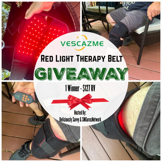 1 Lucky Winner will win a VESCAZME Red Light Therapy Belt Valued At $127! Perfect for your Knees, Elbows, Ankles & Shoulders!