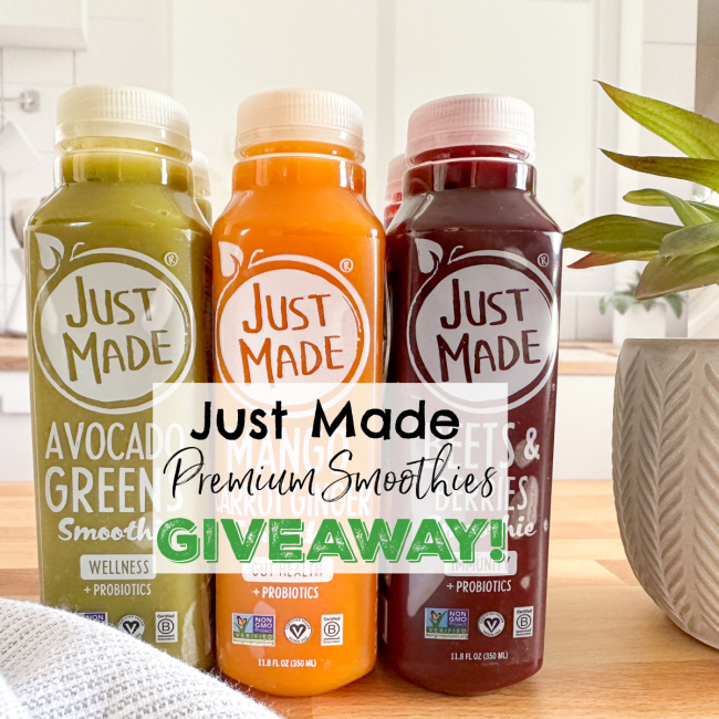 So what do you think of these delicious Just Made Smoothies? They are delicious and good for you and the perfect way to ensure that you and your family stay healthy, hydrated and more. They are the perfect addition to my new Years Health Goals too and they will be for you too. Just Made Smoothies contain everything you want and nothing you do not like absolutely nothing artificial and no added sugars, preservatives or GMO’s! Make sure you visit Just Made online and check them out on Social Media PLUS continue reading to learn how you can enter to win 6 Just Made Smoothies to try for yourself! Enter Today & Good Luck!