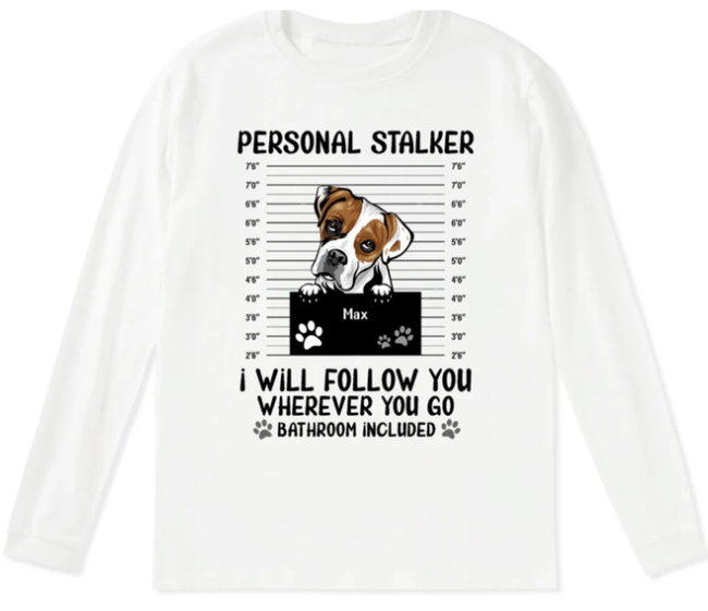The first thing that I fell in love with on the TailTells site is their adorable Personal Stalker – Personalized Custom Long Sleeve T-Shirt. It is one of their custom pet shirts for humans and it is perfection for me as I swear I cannot go to the bathroom with my dog following me there LOL. My sister also is super close to her dog and I know she would get a chuckle out of this one and proudly wear it too. I love that you can personalize the shirt with your breed of dog and with your pooches name too. I also love that it comes in a huge array of colors and that the fabric is a super soft 100% cotton blend that is pre shrunk and super comfortable to wear.