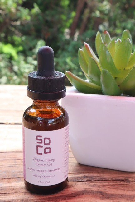 Another thing I am loving about SoCo’s Organic Hemp Oils is that they come in 3 amazing flavors. I am loving the Vanilla/Cacao/Cinnamon but will definitely be checking out the Orange/Cinnamon/Ginger and Mint/Rosemary/Lemongrass flavors next. I also love that each bottle provides 450 mg of Full Spectrum Hemp Oil which is amazing & a generous strength for the price.