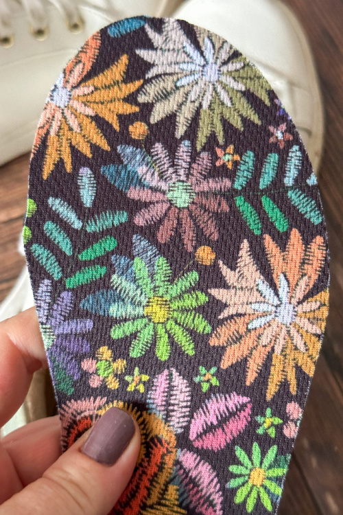 I always love a good cushion in my shoes. I love that those are washable and they have pretty designs as well. I need to grab a pair.