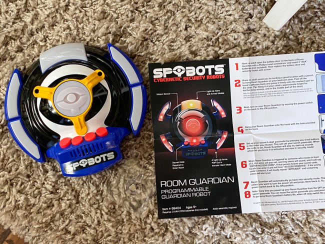 The SpyBots Room Guardian is lots of fun and I wish they had something like this when I was a kid to protect my bedroom. This is a motion-activated robot that provides round-the-clock room security! You simply place it on your door and program it with your secret code. Anyone that wants to enter must know your code or they will not be able to grant access. IF someone tries to enter and they input the wrong code or no code at all, the Room Guardian will go into “Intruder Alert Mode” with flashing super-bright lights and loud, sounding alarms.