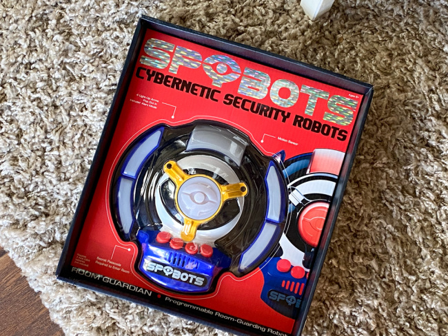 The SpyBot Room Guardian is one of four SpyBots Cybernetic Security Robots so that you can collect them all. They all do different things which I like the they are STEM toys too and this particular product features the engineering portion of STEM.