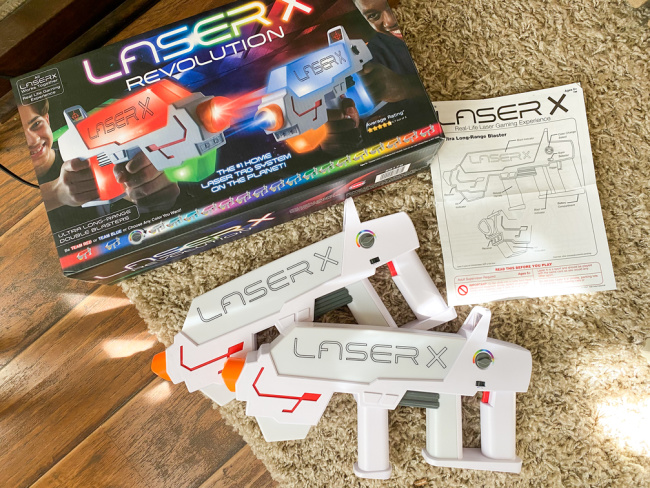 The Laser X Revolution 2 Player Long Range Laser tag Gaming Blaster Set comes with 2 blasters that allows you to blast opponents up to 500 feet away and the guns include rapid fire and a quick-slide reload. It is the #1 home laser tag system on the planet and for good reason as it is so much fun! With this game, you will feel as if you have your own laser tag arena in your own backyard and it provides the longest blasting distance (Over 500 feet) of ANY other Laser X Blasters. You can play this inside or out and in the darkness or in bright sunlight. I also love that this game is simply the 2 blasters and that there is nothing else needed for this game ~ no need for chest or armband receivers just the 2 Laser X Revolution blasters.