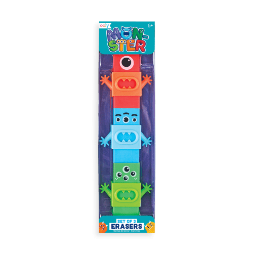 Grab one of the 3 Monster Stacking Erasers and you are ready for any mistakes. Each of the erasers arms can be interchanged allowing for more colorful fun.