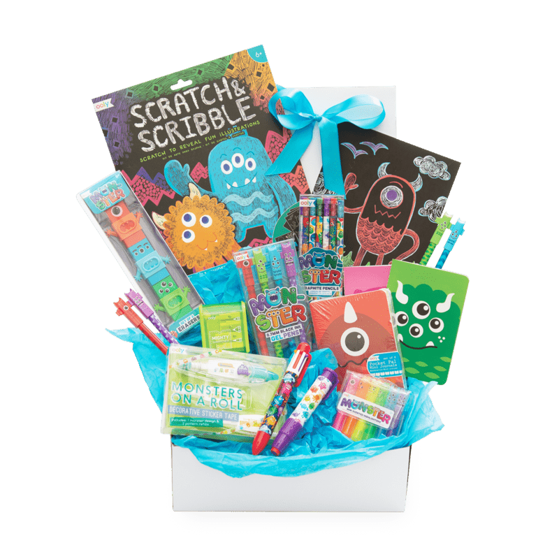 I am so excited to share OOLY and their fabulously fun Monster Pals Writing Super Set with everyone that I know as this is a super fun set of monster themed school and stationery supplies with a fun scratch art kit that comes pre-wrapped in a cute white box with a bow for easy gift giving. It is so cool and for sure the kids will go nuts for drawing, coloring and creating with all of the amazing goodies that this set comes with.